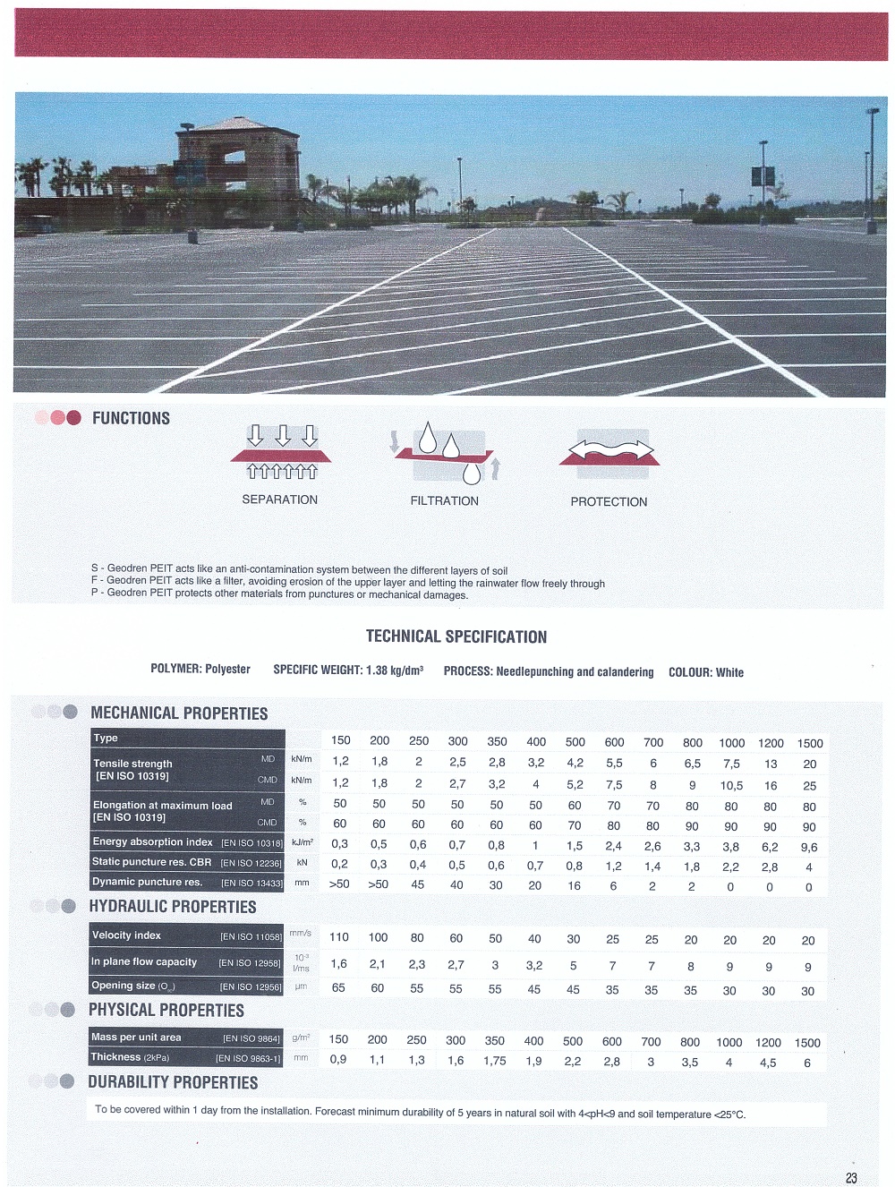 ביריעות אלו הרבה פעמים נהוג להשתמש בעת התקנת דשא סינטטי כיוון שהיריעות כן מאפשרות למים לחלחל אל פני האדמה ובכך הן מונעות הצטברות של שלוליות לא רצויות.
