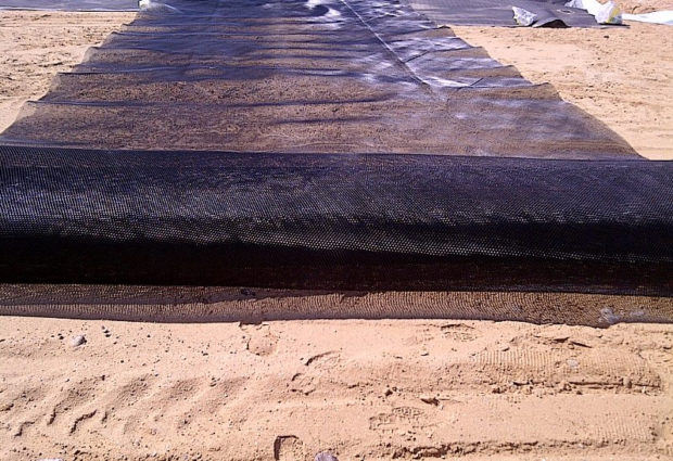 Order of steps is as follows: First lay a geotechnical fabric to protect from mechanical damage.