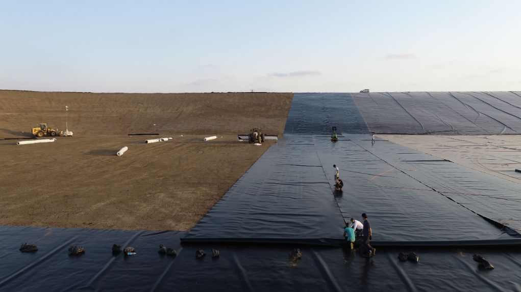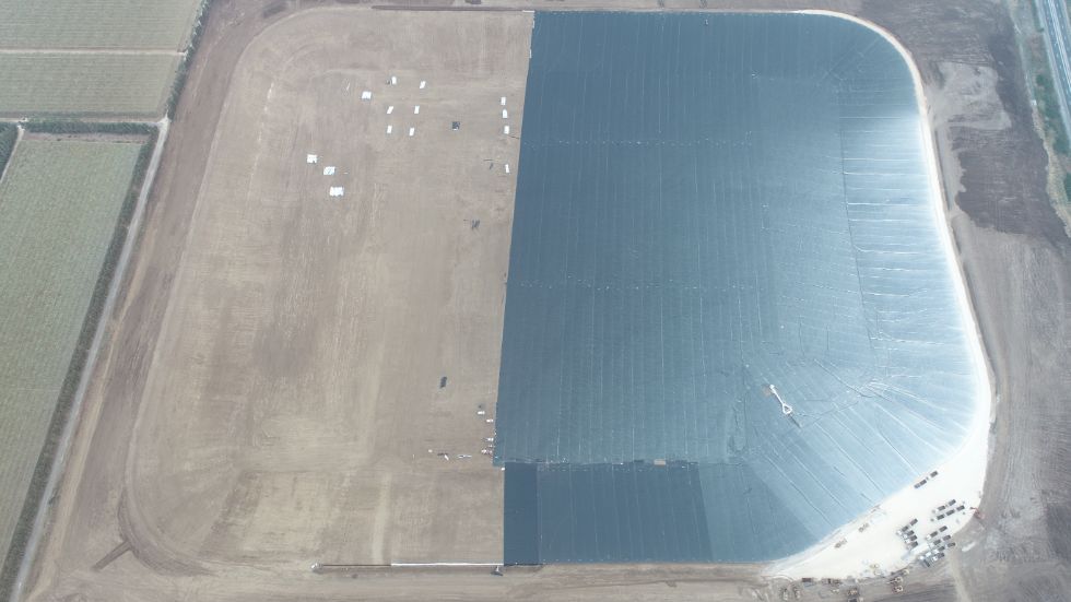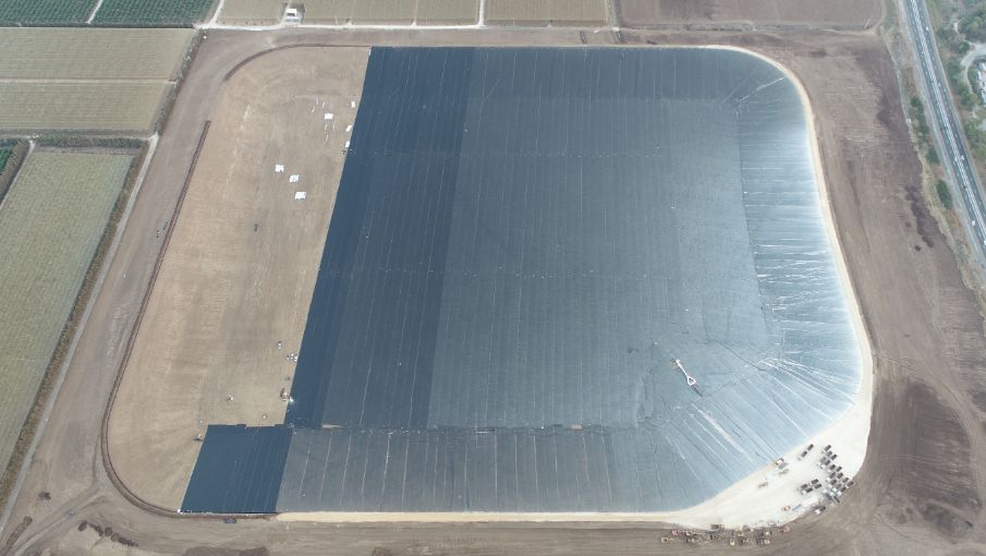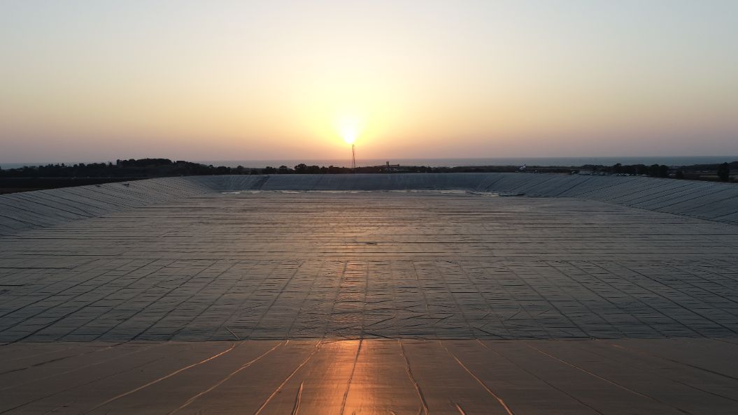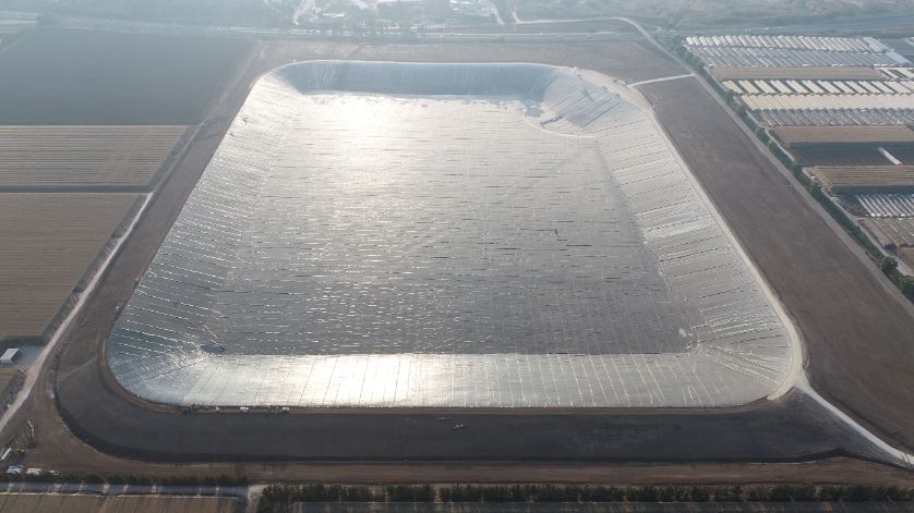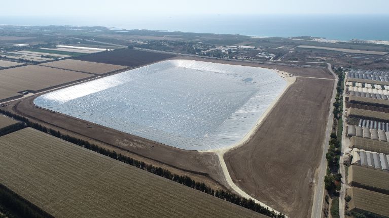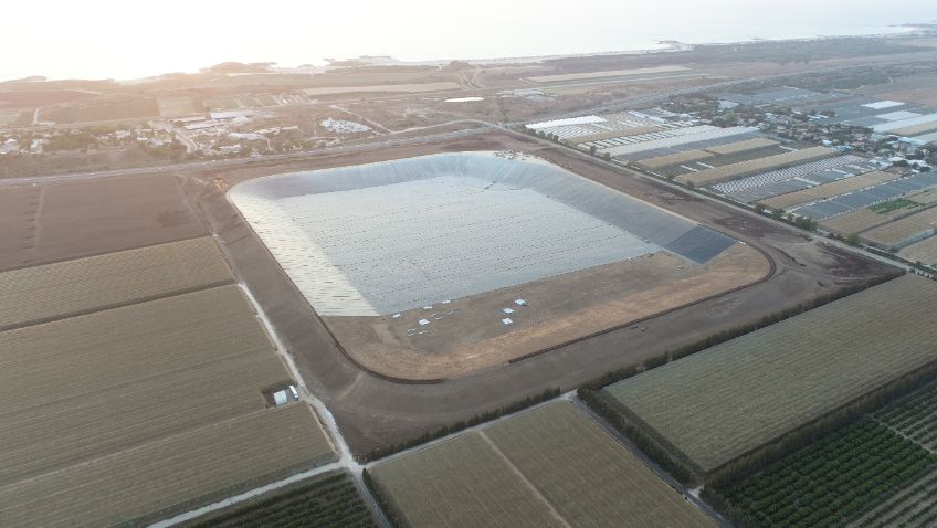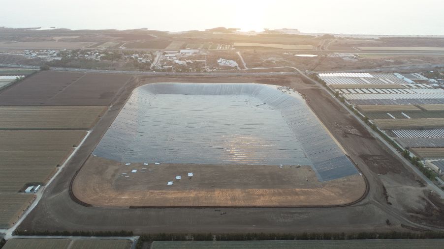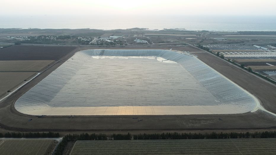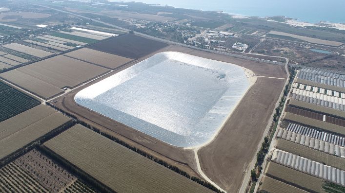 A water reservoir among the largest in Israel, established on the Carmel coast and will eventually contain about 3.3 million cubic meters of tertiary water.