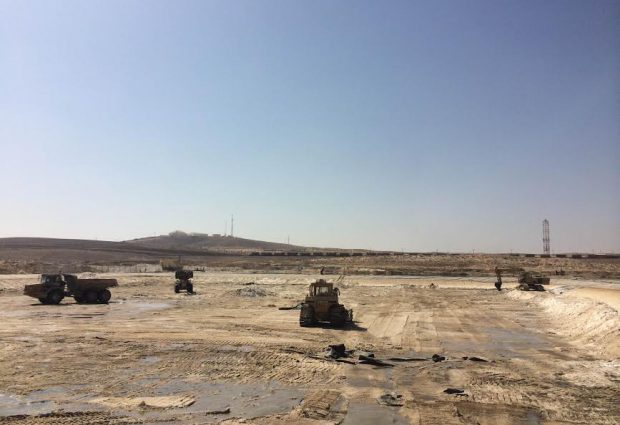 The sealing of a phosphoric acid storage pond at the Rotem Amfert Negev plant with polyethylene plastic sheeting is just one of the many projects carried out by Komashov Mishorim for Israel’s chemical industry. The project involved the laying of several sealing layers on geotechnic fabric sheeting separated with a drainage net to control leakages.